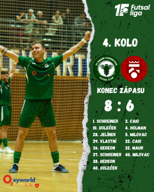 Po přesunutí zápasu na žádost Chrudimi ze čtvrtka na neděli jsme 10.9. odehráli 3. kolo 1. Futsal ligy. I přes bojovnost hráčů Baníků, kteří se utkali s nejlepším týmem nejvyšší futsalové soutěže v historii, Chrudim ukázala, svou kvalitu a důvod, proč je držitelem 15 titulů.
